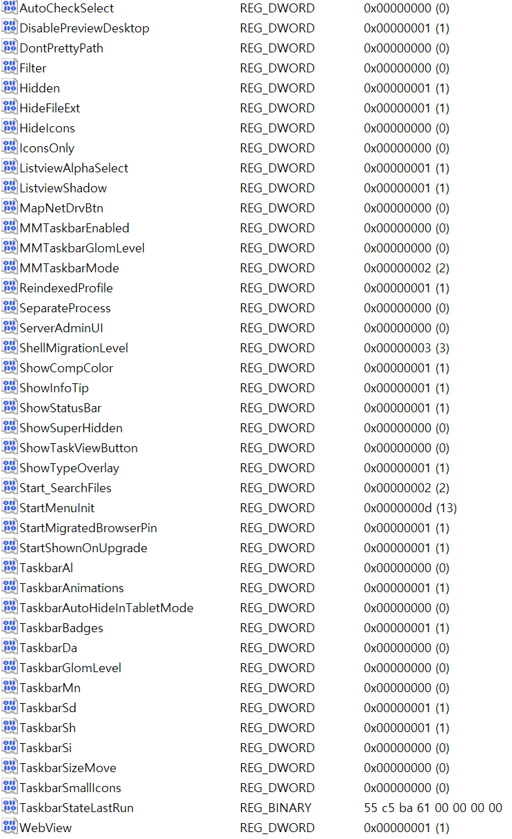HKEY_CURRENT_USER\Software\Microsoft\Windows\CurrentVersion\Explorer\Advanced