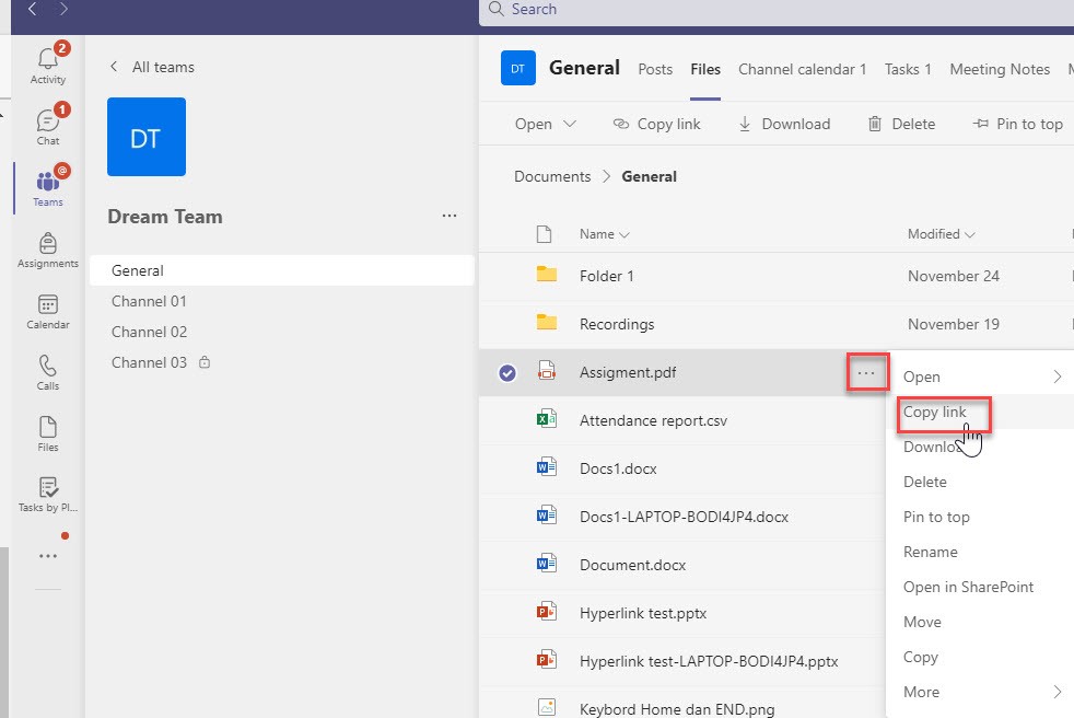 1) 게시 링크: 게시물의 오른쪽 상단에 마우스를 가져 가시면 선택 > (...) > 복사 링크를 선택합니다. 파일에 대한 링크: 선택 > 주석 오른쪽 상단에 마우스를 마우스로 가져갑니다(...) > 복사 링크를 선택합니다.