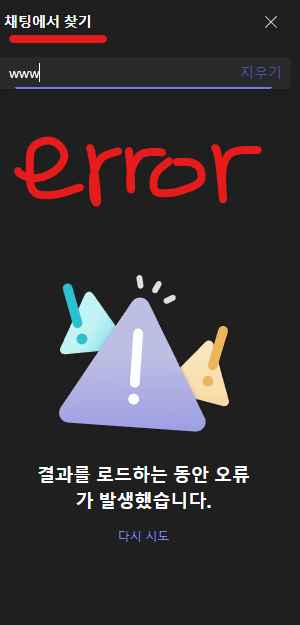 귀하의 설명에 따르면 Teams 채팅 내에서 검색할 때 오류가 발생한다는 소식을 듣게 되어 죄송합니다. 불편을 끼쳐 드려 대단히 죄송합니다.