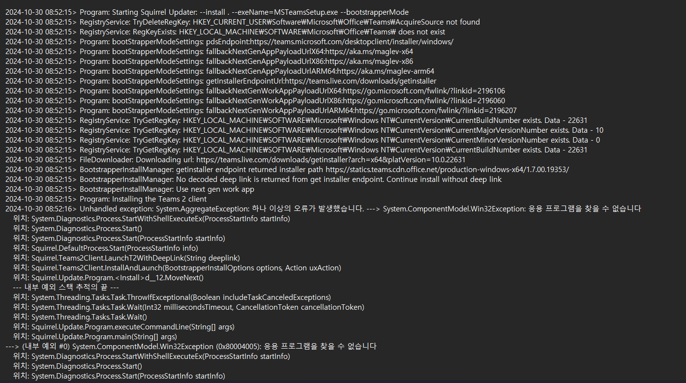 - 프롬프트에서 .\teamsbootstrapper.exe -p를 입력합니다.