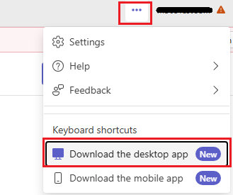 Microsoft Teams 웹 앱에서 Microsoft Teams 앱을 다운로드하려면 오른쪽 상단의 옵션 버튼을 클릭하십시오(...)"데스크톱 앱 다운로드"를 >>