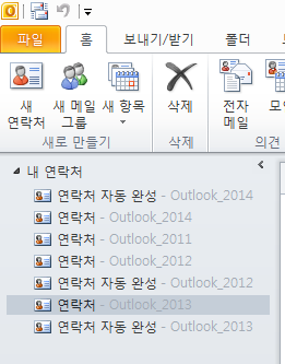 연락처의 경우 이전에 Outlook 사서함(PST)를 Outlook_2011/Outlook_2012... 과 같은 형태로 만들어 주시면서 각각의 연락처 폴더가 만들어 진것으로 예상이 됩니다.