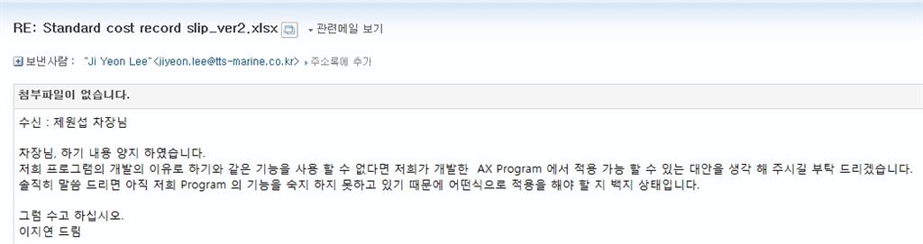 문제가 발생되는 파일을 *.MSG나 EML로 저장하여 공개된 카페 또는 블로그에 올려 주시기 바랍니다.