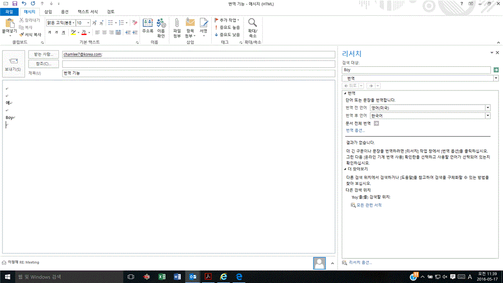 문의 하신 Outlook 번역 오류에 대해 안내를 드리겠습니다.