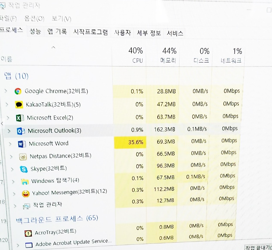 문의 하신 Word에서 CPU 사용율에 대해 안내를 드리겠습니다.