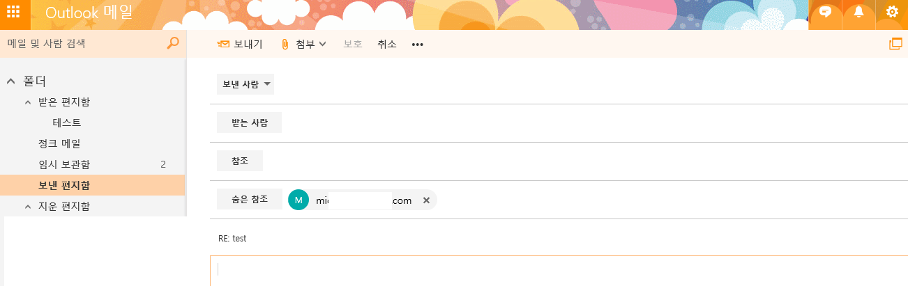 웹 메일 Outlook.com에서는 숨은 참조를 포함한 메일을 다시 전체 회신 할 경우, 숨은 참조가 그대로 유지됩니다.