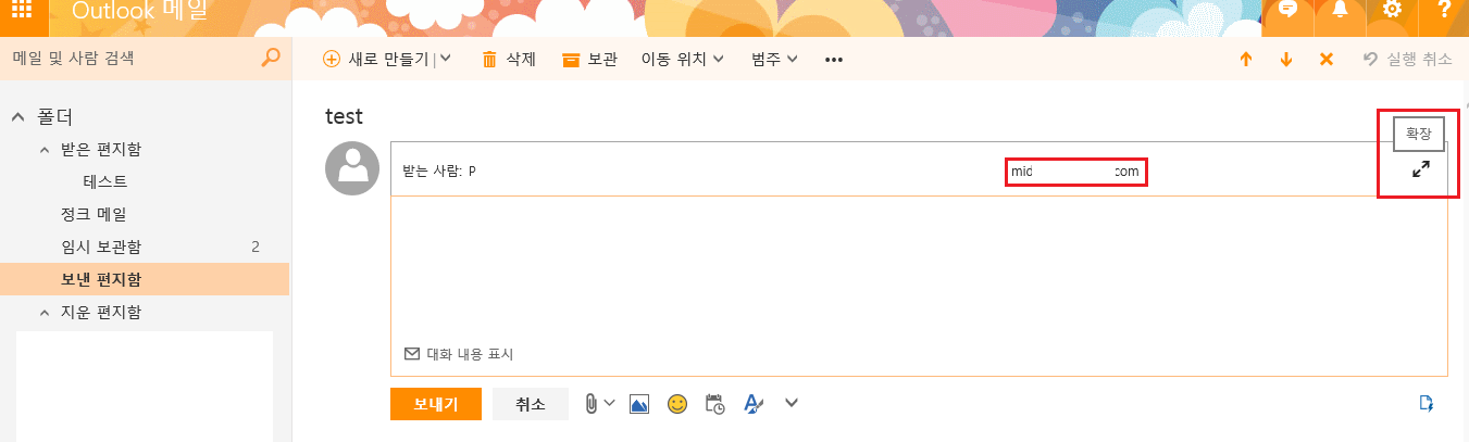 웹 메일 Outlook.com의 보낸 편지함에서 숨은 참조가 포함된 메일을 선택하여 ‘전체회신’ 클릭한다면, 첫 번째 이미지처럼 표시되고, 대각선 화살표 아이콘인 ‘확장’을 클릭하시면 두 번째 그림과 같이 받는 사람, 참조, 숨은 참조 항목이 표시됩니다. 이때, ‘확장’을 클릭하지 않고 메일을 발송해도 숨은 참조는 유지된 상태로 발송되므로, 이점 참고하여 서비스를 이용하세요.