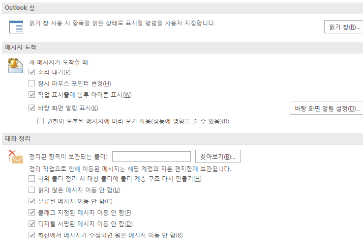 정확한 확인을 위해서 사용 중인 Outlook 버전을 알려주시기 바랍니다.