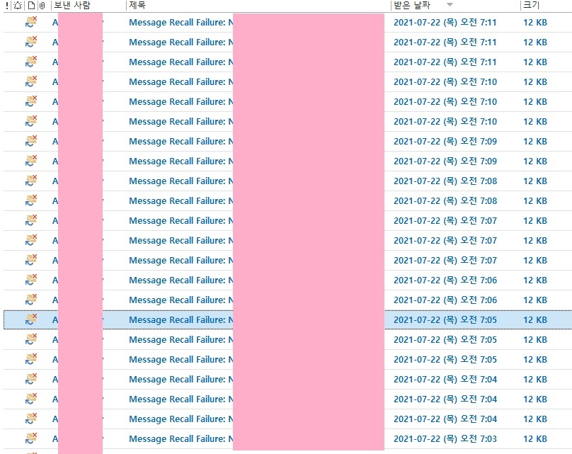 현재 문의주신 증상은 보통 Outlook에서 사용하는 프로필이 손상되었을 때 나타날 수 있는 증상으로 새 프로필을 만들어 계정을 추가 후 문제가 해결되었는지 확인 필요한 부분으로 다음 링크의 새 프로필 만들기 부분을 참고하여 설정 부탁드립니다.