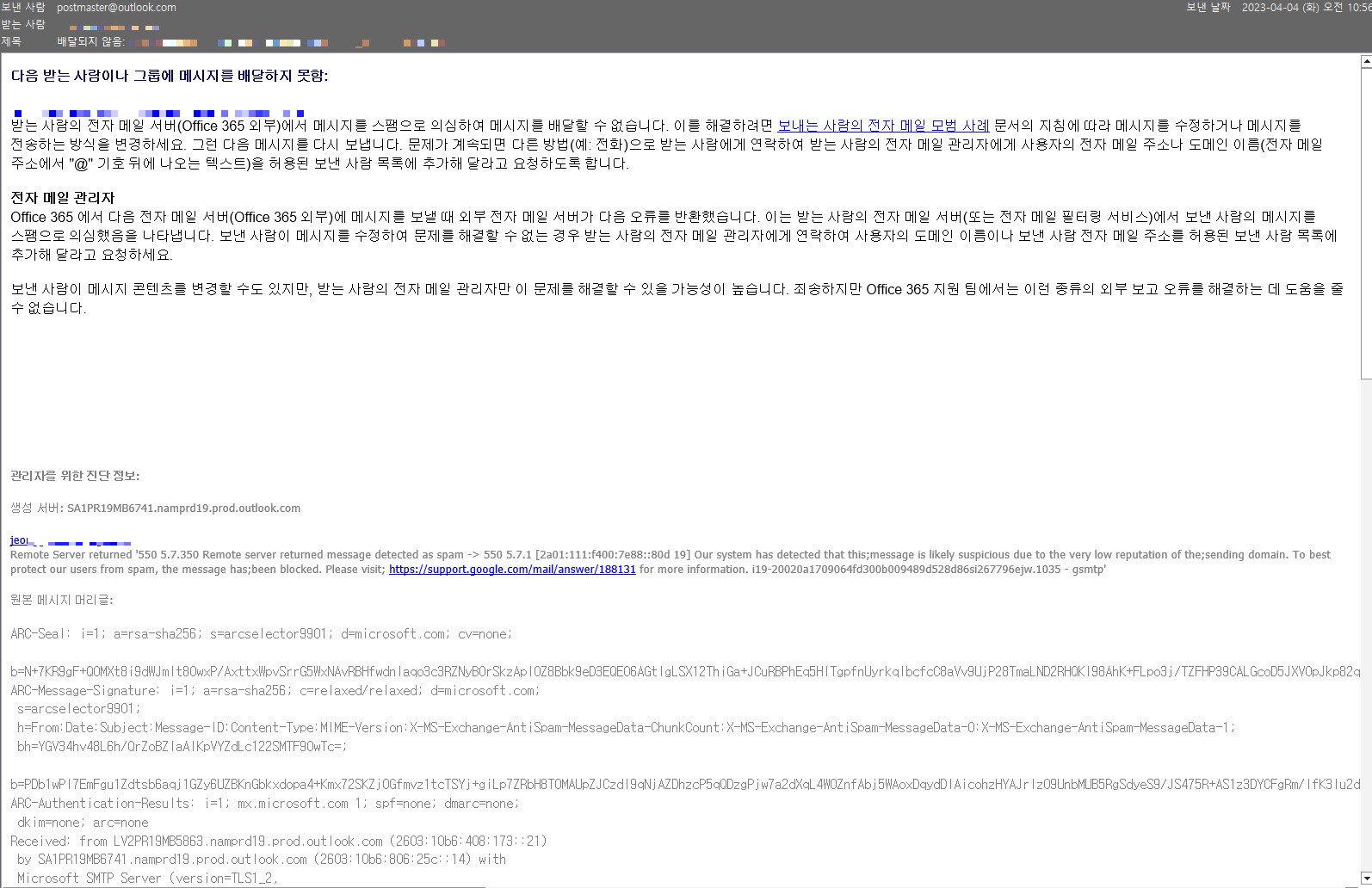 전자 메일을 보내는 사람이 조직 외부 사용자의 전자 메일을 허용하나요?