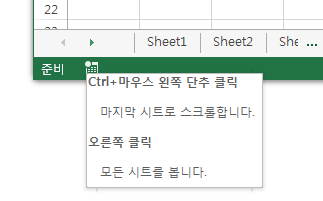 참고로 하나의 시트 탭 이동의 경우 Ctrl+Page Up/Down을 이용하여 빠르게 움직일 수 있습니다.