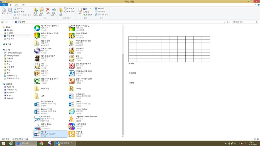 문의 하신 Excel의 미리 보기가 보이지 않는 문제에 대해 안내를 드리겠습니다.