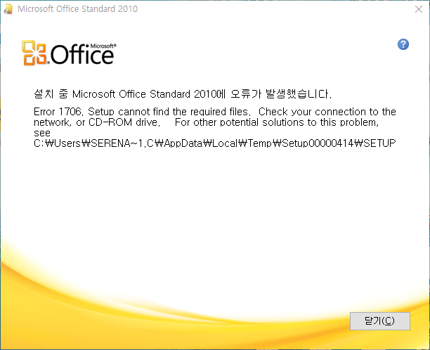 문의 하신 Office 2010 설치시 1706 오류에 대해 안내를 드리겠습니다.