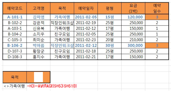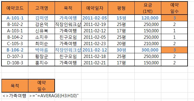 따라서 조건의 "예약 일수"를 제거하거나 다른 이름으로 입력하면 함수가 나타날 것입니다.