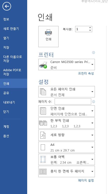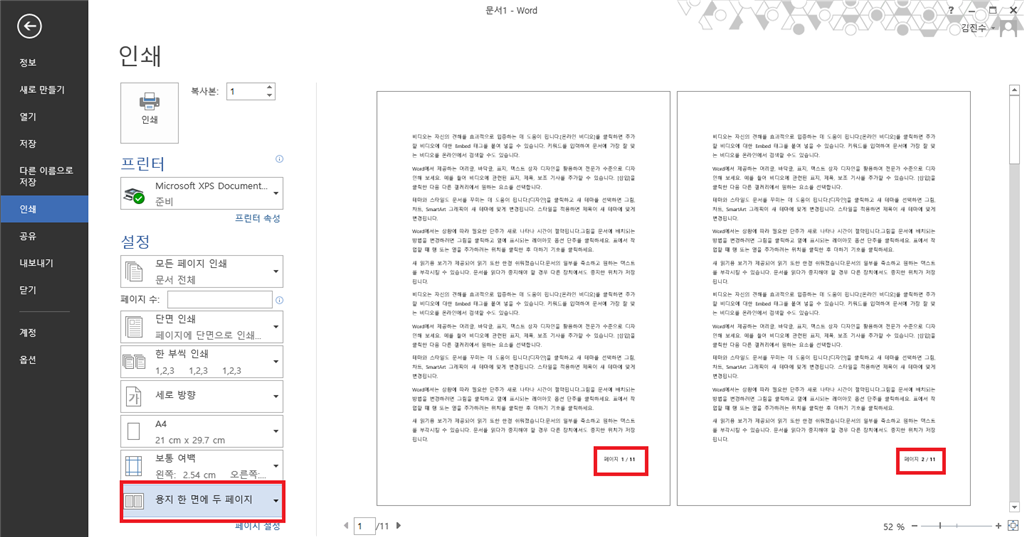 문의 하신 Word에서 "용지 한면에 2페이지 인쇄"를 하면 역순으로 인쇄되는 문제에 대해 안내를 드리겠습니다.