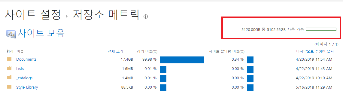 우측 상단 톱니바퀴 - OneDrive 설정 - 기타 설정 - 저장소 메트릭