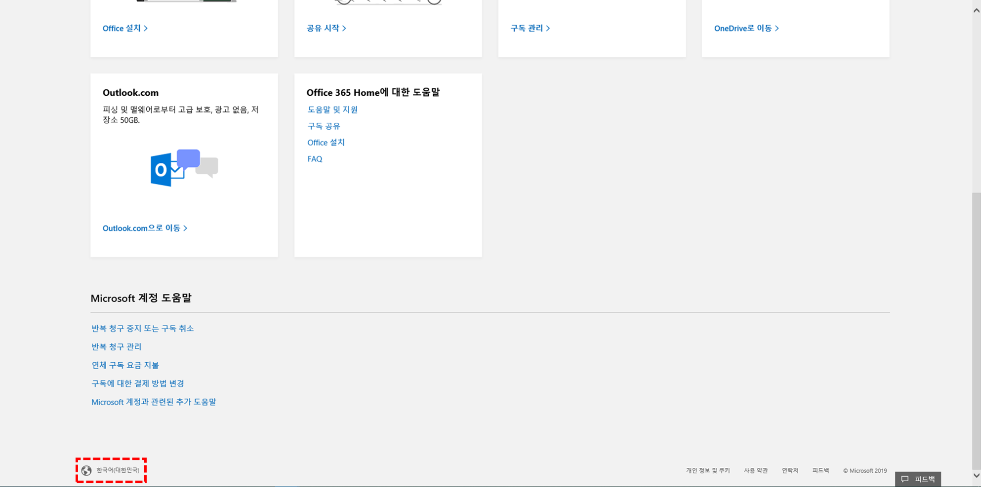 접속을 하면 모두 영문버전으로 나오는데 오피스365 영문을 한글로 변환하는 방법 문의 드립니다.