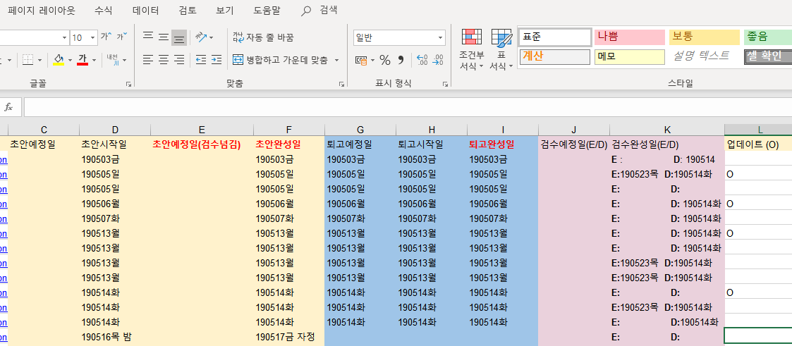 Excel 쪽에서 구글 스프레드시트처럼 표시되는 것을 원한다고 말씀하셨고, 이는 Excel에서 다음의 절차에 따라 유사하게 표현할 수 있습니다.