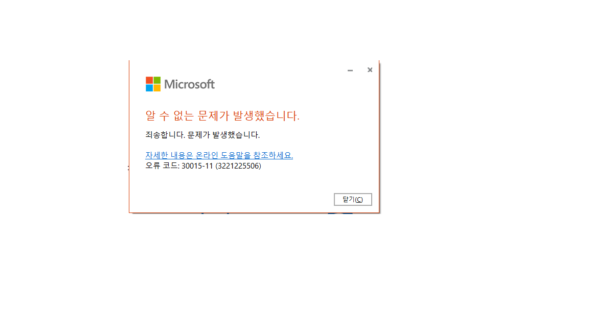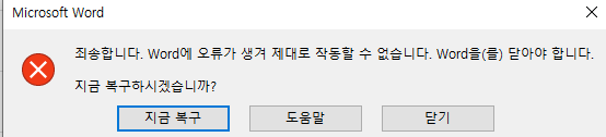 워드나 ppt를 실행하면 이런 오류가 뜨면서 꺼집니다.