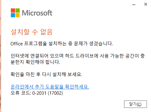 제거 후 설치하면 이런 오류코드가 뜨면서 설치가 되지 않습니다.