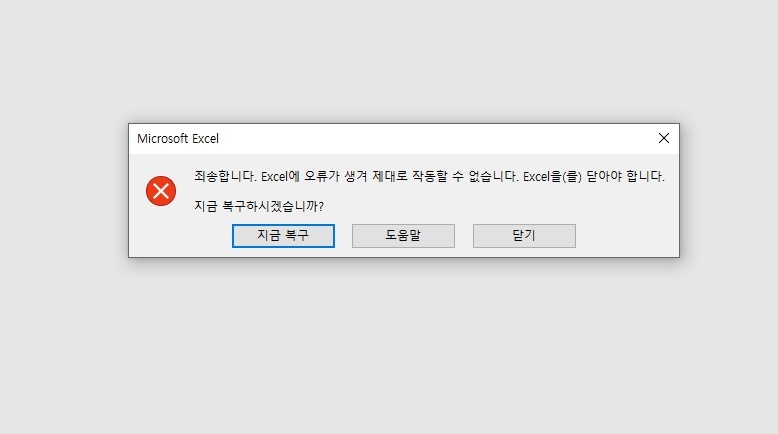 1. 엑셀 파일 작업 중에 창이 갑자가 꺼집니다.