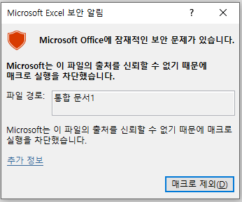 이후 재부팅한 뒤, 매크로 파일을 열어보는 작업을 진행해 보시기 바랍니다.