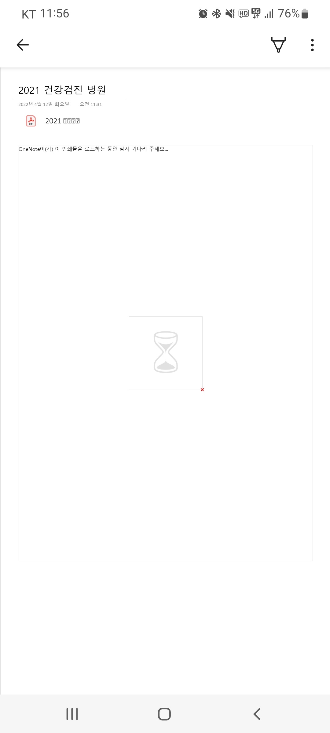 PC 원노트에서 PDF문서을 노트에 넣을 때 (삽입->파일인쇄물) PC에서는 보이는데