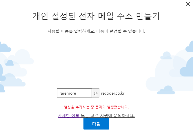 - 계정 B에서 ___@___.___를 사용했는데 별칭을 변경하고 싶어서 주소를 제거했는데 오류가 발생하여 제거할 수 없습니다. << 오류 메시지는 무엇이었습니까? 여기에 복사하여 붙여 넣으십시오.