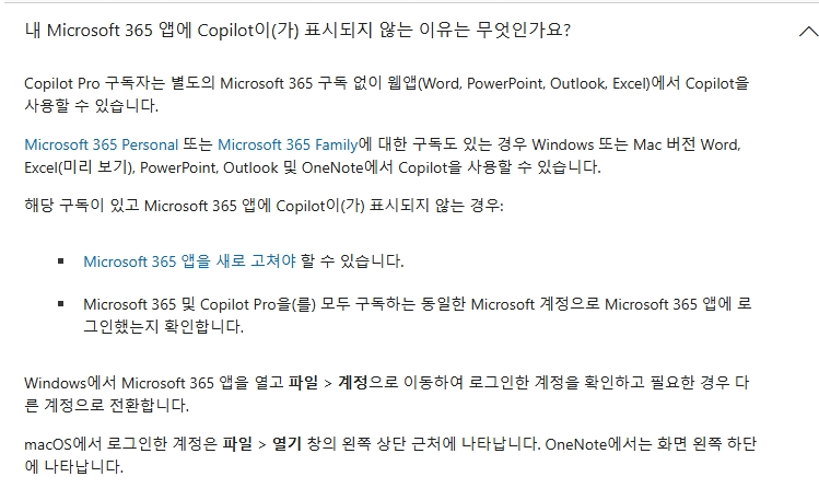 설명드릴 것은 Microsoft 365 앱에서 Copilot을 사용하려면 Copilot을 구독해야 합니다. Copikot의 무료 버전은 Copilot과 관련이 없습니다.