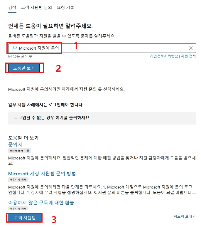 다음 링크를 클릭할 수 있습니다: 문의처 - Microsoft 지원