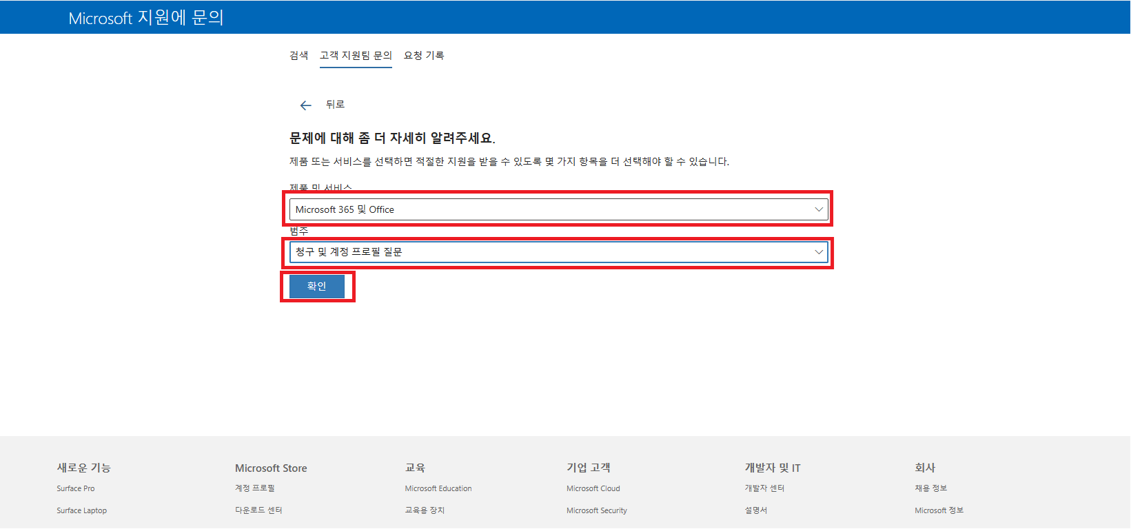 - 지원 담당자와 채팅하거나 다시 전화를 요청하려면 이 항목을 선택합니다.