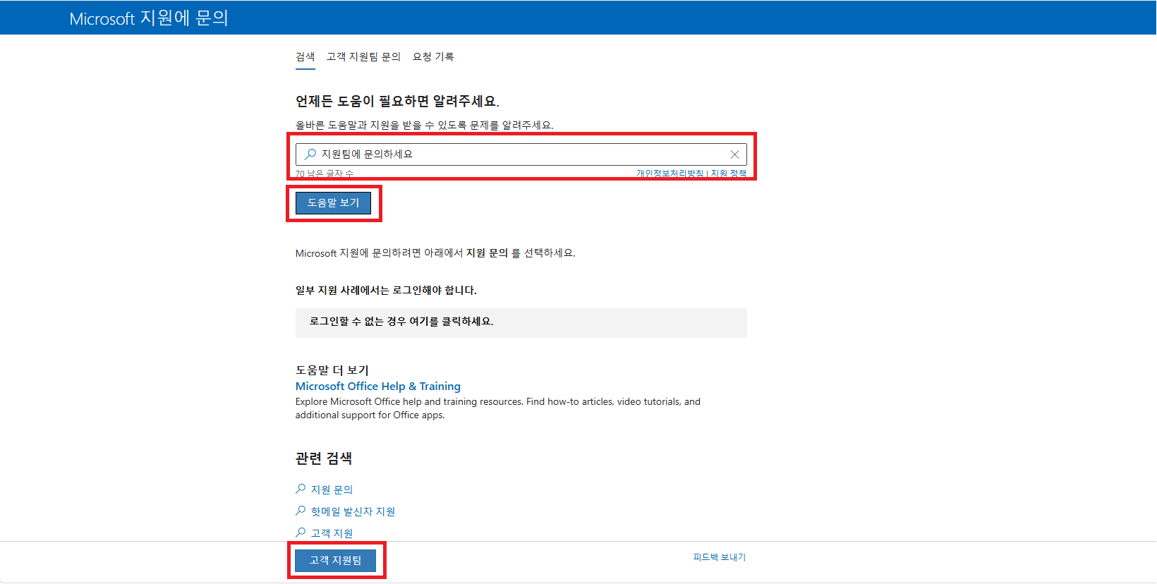 - 검색 상자에 문제를 입력합니다. (예: 지원팀에 문의하세요.)