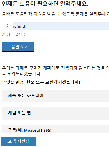 검색창에 문제를 입력합니다. 예를 들어 구독/인보이스/환불이 있습니다.