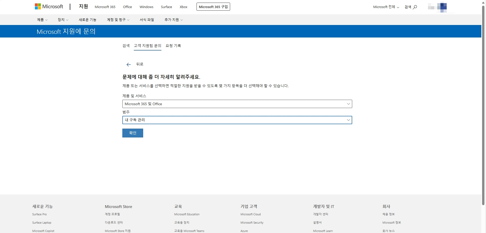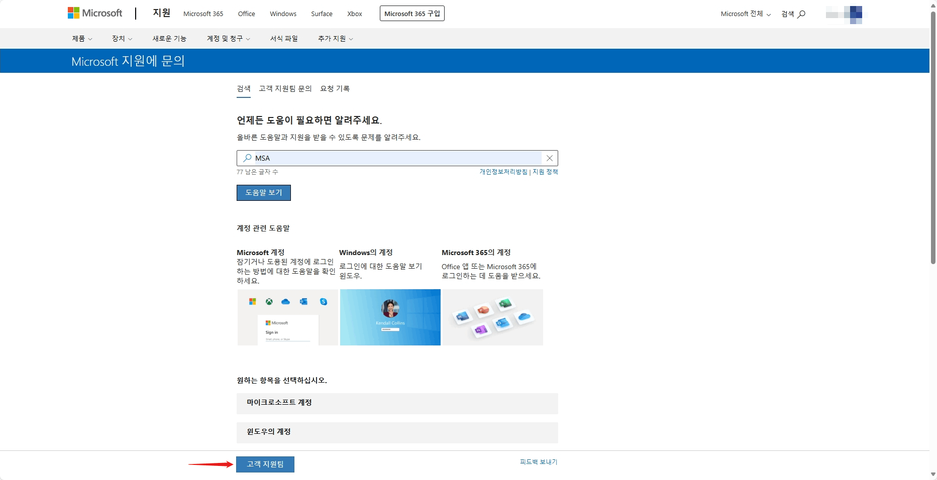 - 다음 웹 사이트로 이동합니다. 연락처 - Microsoft 지원팀