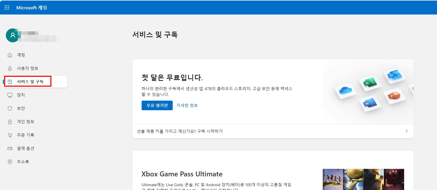 마이크로소프트 계정의 서비스 및 구독 인터페이스에서 동일한 금액의 제품 정보가 있는지 먼저 확인할 수 있습니다.Microsoft 계정 | 서비스 및 구독