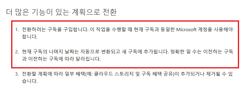 Microsoft 365 구독 간 전환하기 - Microsoft 지원
