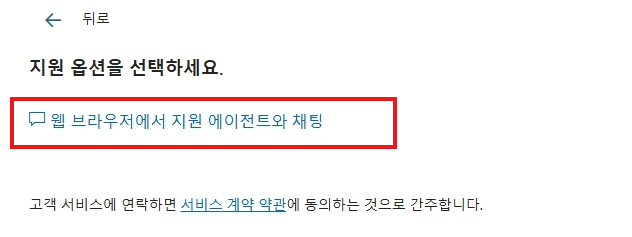 7.이제 웹 브라우저에서 지원 에이전트와 채팅 옵션을 선택할 수 있습니다.