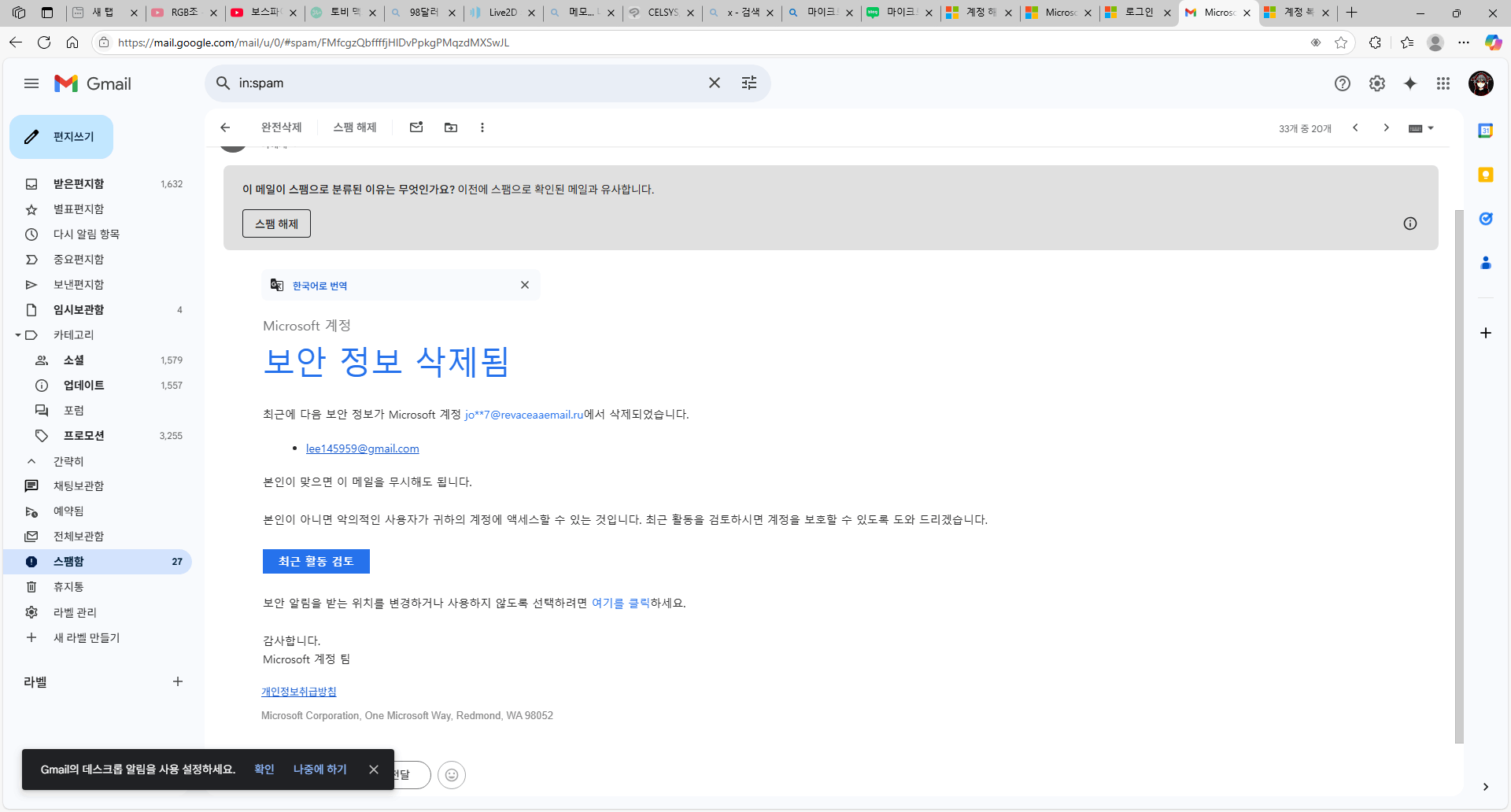 알겠습니다. 위에서 말씀드렸듯이, 주요 이메일 주소, 전화번호, 별칭, 그리고 2단계 인증이 삭제되거나 변경된 경우, 계정을 복구하지 못할 가능성이 높습니다.