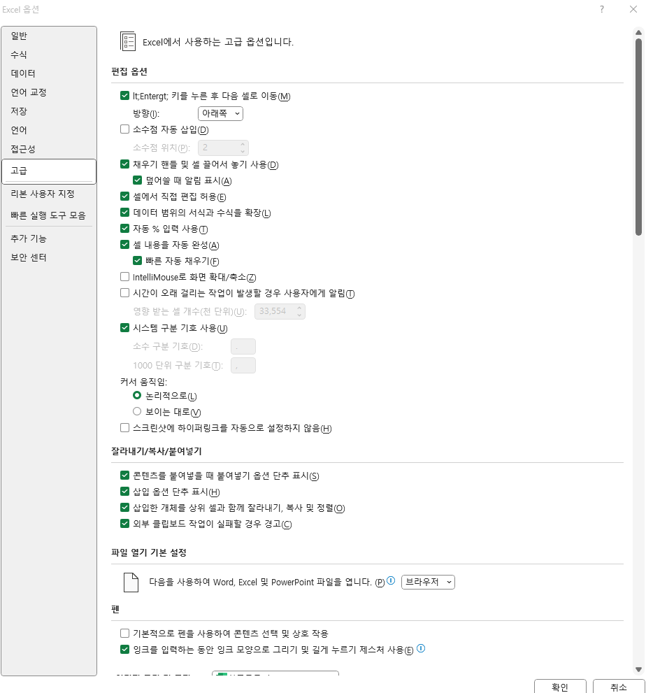 Excel 옵션에서 고급으로 이동합니다.