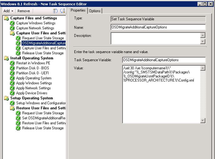 Name the Task Sequence Variable OSDMigrateAdditionalCaptureOptions and set the Value: