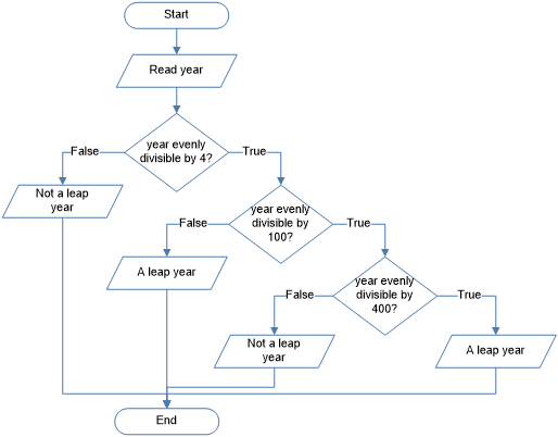 Figure: A flowchart for checking if a given year’s a leap year