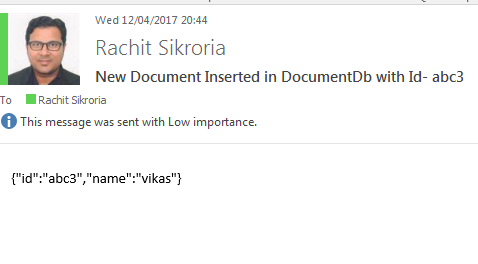 Similarly, the same document was successfully updated in DocumentdB in the next hit.