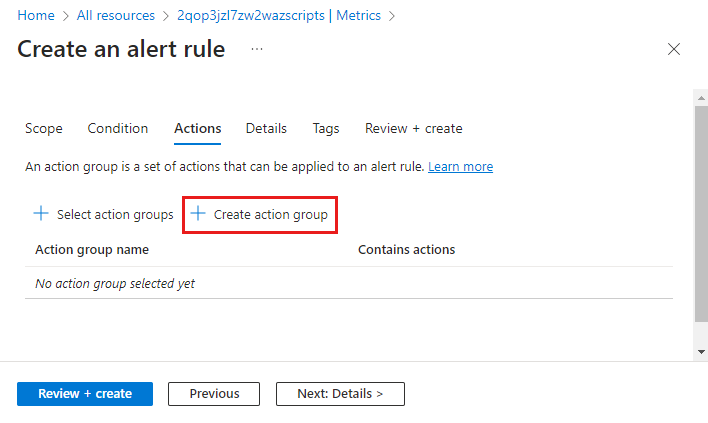- 경고 세부 정보를 정의하는 작업 그룹 만들기