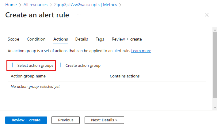 - 구독 및 리소스 그룹은 경고 규칙이 저장되는 위치입니다. 모니터링하는 리소스와 동일한 리소스 그룹에 있을 필요는 없습니다.