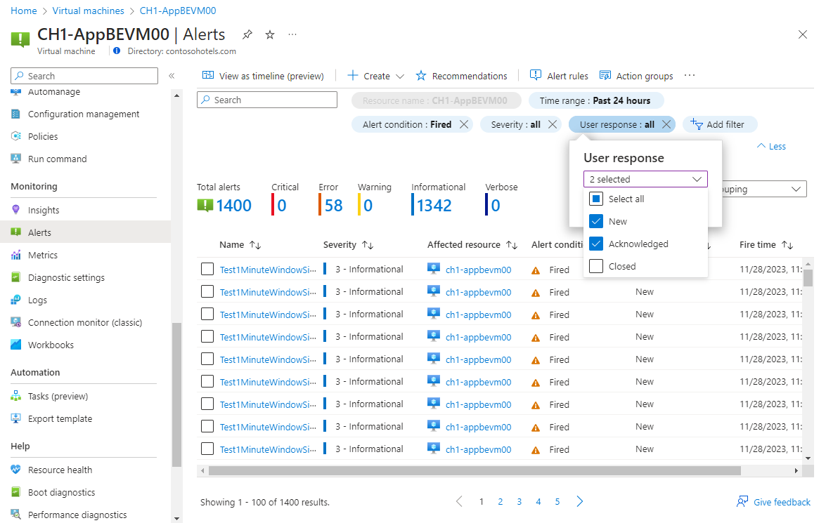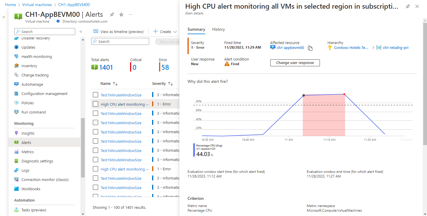 - 경고의 심각도. 심각도를 사용하면 상대적 중요도가 비슷한 경고를 그룹화할 수 있습니다. 오류의 심각도는 응답하지 않는 가상 머신에 적합합니다.