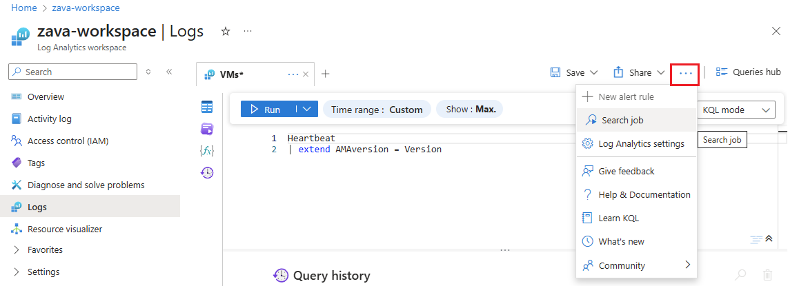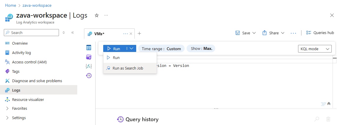 Azure Monitor 로그는 검색 작업을 실행하고 검색 작업 결과에 대한 작업 영역에 새 테이블을 만듭니다.