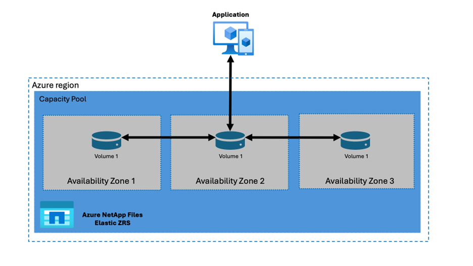 Azure NetApp Files 탄력적 영역 중복 스토리지는 영역 간에 데이터를 동기적으로 복제하고 장애 조치(failover)를 자동화하므로 영역 중단이 애플리케이션 가용성에 영향을 주지 않습니다. Azure NetApp Files 탄력적 영역 중복 스토리지는 데이터 손실 제로, 최소 가동 중지 시간, 네이티브로 관리되는 간소화된 운영을 제공하므로, Azure에서 연속적인 데이터 접근을 위한 전략적 선택입니다.