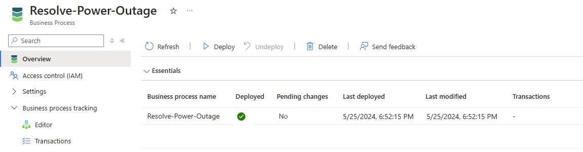 Azure Portal에서 비즈니스 프로세스를 엽니다.
