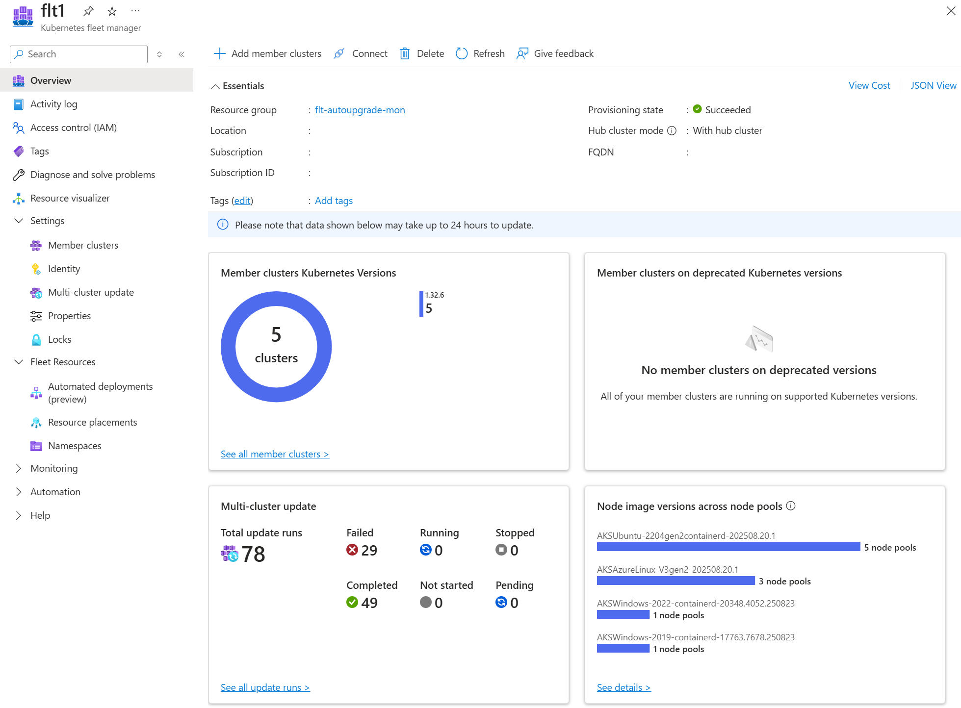 Azure Kubernetes Fleet Manager를 사용하면 지원되는 여러 Kubernetes 클러스터를 대규모로 관리할 수 있습니다. Fleet Manager는 플랫폼 관리자에게 자동화된 안전한 다중 클러스터 업데이트, 지능형 Kubernetes 리소스 배치 및 클러스터에 대한 모니터링 데이터에 액세스할 수 있는 중앙 집중식 위치에 액세스할 수 있도록 합니다.