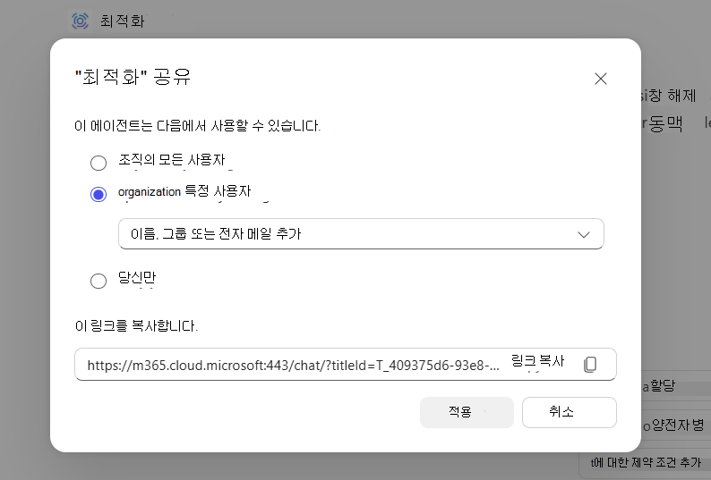 - 사용자 지정된 에이전트를 organization 다른 사용자와 공유